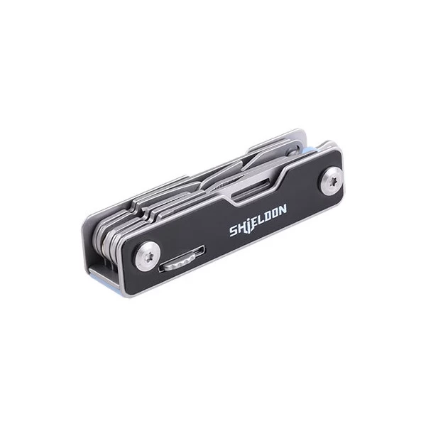 - 9 fonctions : Lame 43mm, Scie 43mm, Ciseaux, Décapsuleur, Ouvre-boîte, Lime, Tournevis plat 3mm, Tournevis Philipps, Anneau pour porte-clés ou dragonne.